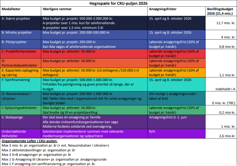 De overordnede rammer for CKU-puljen i 2026 fremgår af nedenstående oversigt: